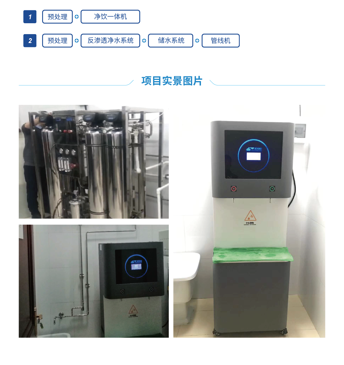 该项目为某检查院的办公楼直饮水项目,检察院设立有10个职能部门,日常用水量大且分散,而员工食堂需要大量集中用水。目前饮水使用的开水机存在能耗大、高峰期用水排队、饮水二次污染等显著问题。