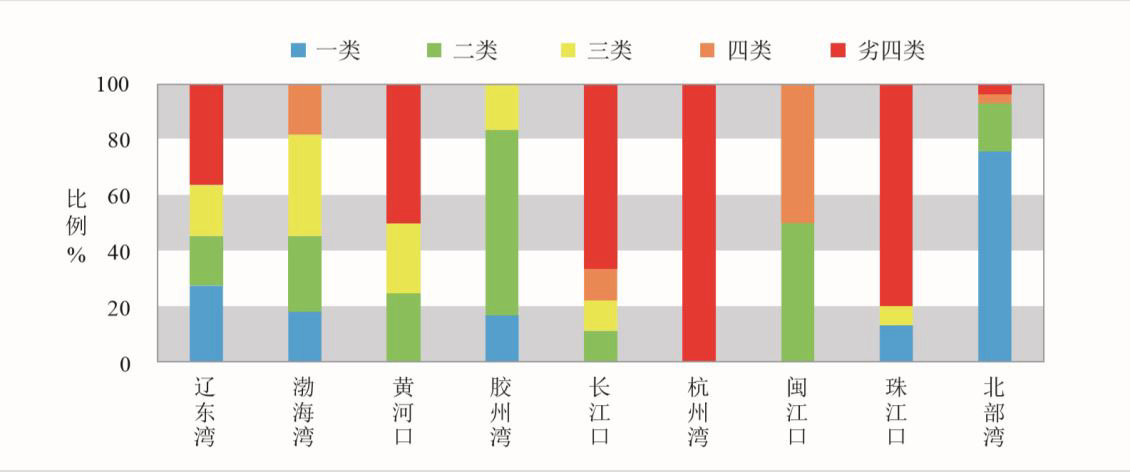 2018年中国环境状况公报,中国水源水质情况报告。长江、黄河、珠江、松花江、淮河、海河、辽河七大流域和浙闽片河流、西北诸河、西南诸河监测的1613个水质断面中,Ⅰ类占5.0%,Ⅱ类占43.0%,Ⅲ类占26.3%,Ⅳ类占14.4%,Ⅴ类占4.5%,劣Ⅴ类占6.9%。