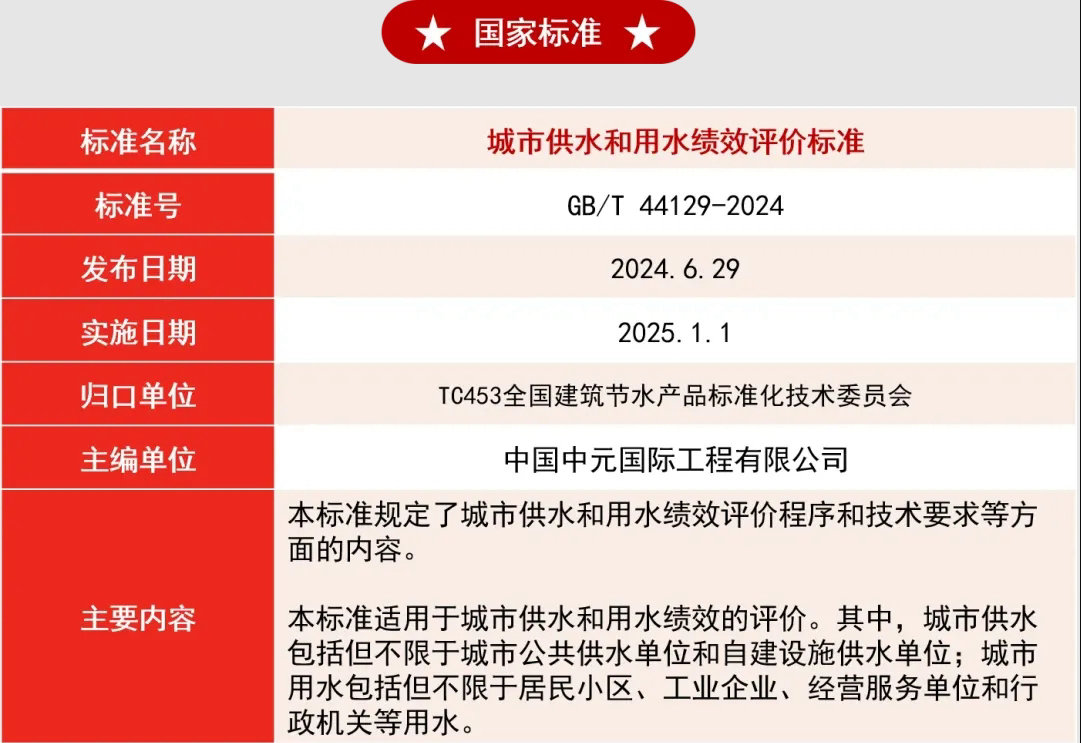 《城市供水和用水绩效评价标准》(GBT 44129-2024)2025年正式实施