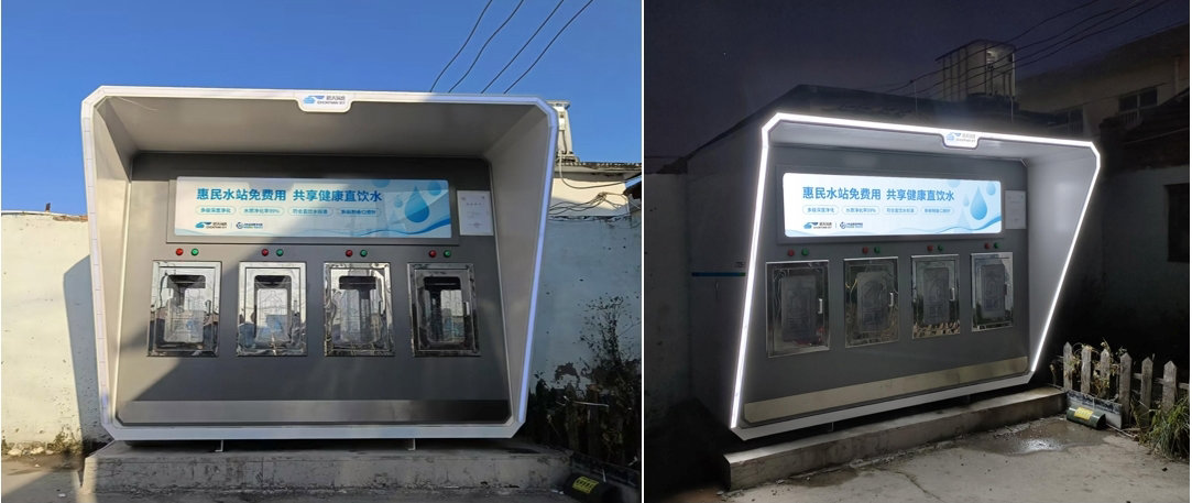 晨天环境获悉此项目情况后,第一时间组织专业团队进行实地考察、制定改造方案。考虑到项目实际情况,决定采用户外一体化直饮水站的形式,直接利用地下水源,经过特定工艺流程后可精准去除硝酸盐、砷、氟等有害物质,出水水质能够达到瓶(桶)装饮用水标准。不仅如此,晨天环境户外一体化直饮水站具备工业级的制水能力及模块化可拓展设计,未来可直接升级为村庄的直饮水水厂,接入管道后即可实现直饮水入户,真正做到从水源到水龙头的全过程安全饮水保障。考虑到我国的治水方针及健全完善运行管理体制机制的要求,直饮水站预留废水回收系统,选址在学校、商业等公共场所密集区域,可将废水作为中水水源使用,充分利用水资源。同时直饮水水站的外形及功能设计也充分融入智慧泵房的建设标准,如防寒抗冻、绿色能源、运维检修、实时监测、远程控制等,能够有效降低运行维护成本,且有助于后期实现智能化统筹管理,为宁河区农村供水高质量发展贡献力量。